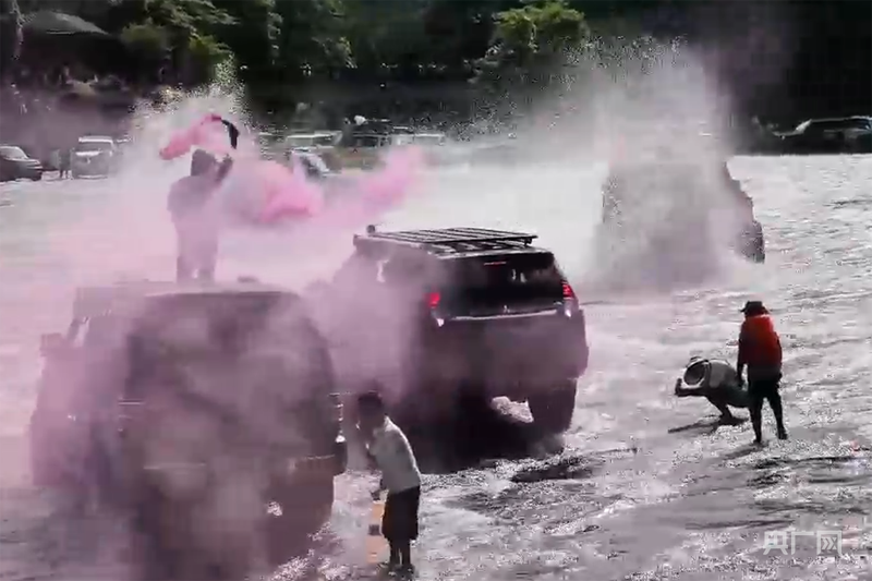 越野车在河床上聚集、漂移(图源网友 央广网发)