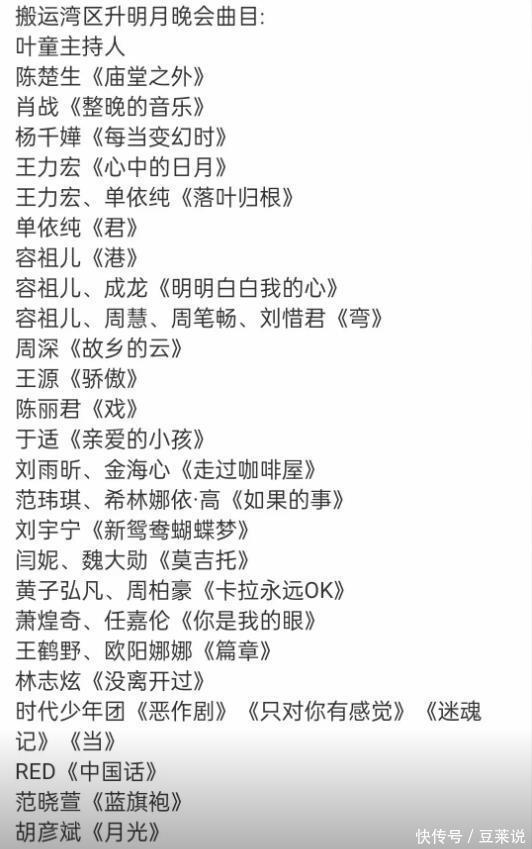 还有王力宏,从网曝的节目单上看,王力将演唱《心中的日月》以及《落叶归根》两首歌,不过许多网友更期待听到《天地龙鳞》